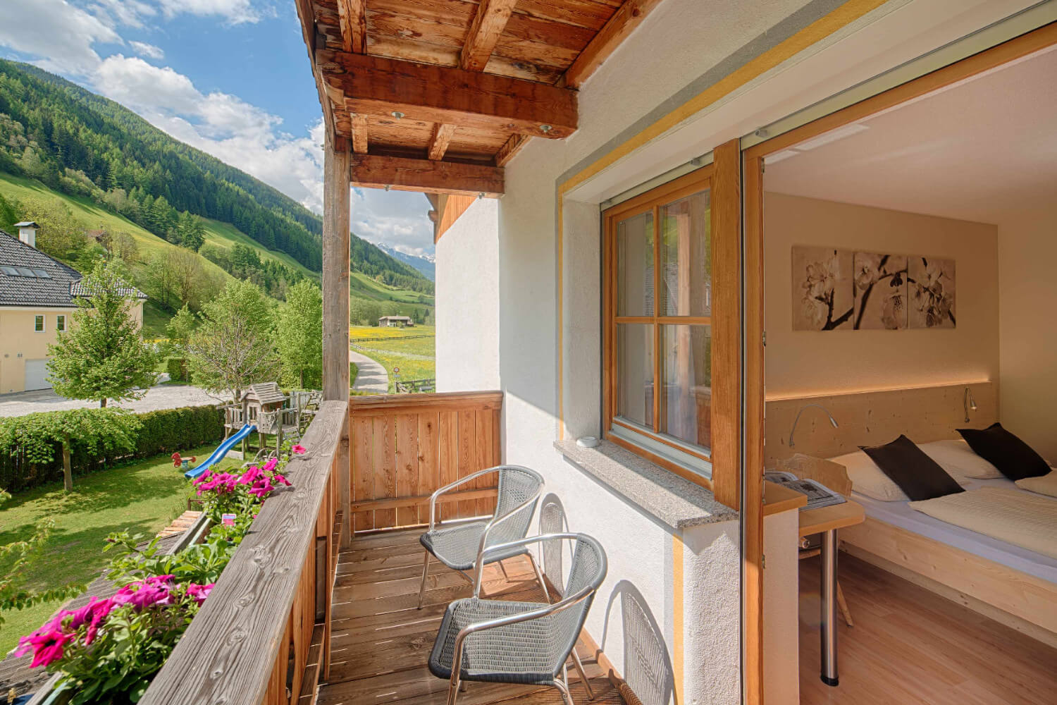 Nur wenige Gehminuten entfernt von Steinhaus, dem Hauptort des Ahrntales, sowie den Aufstiegsanlagen der Ski- und Wanderarena Klausberg ist unser Haus der optimale Ausgangspunkt für Deinen Wohlfühl-Urlaub in den Bergen. Denn während Wanderer, Bergsteiger und Mountainbiker ihre Touren direkt von unserer Urlaubsunterkunft im Ahrntal aus starten können, ist im Winter für geübte Skifahrer und Snowboarder die letzte Skiabfahrt vom Skigebiet Klausberg praktisch bis vor die Haustür möglich. Perfekte Aussichten also für Deinen Aktivurlaub im Ahrntal!